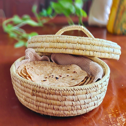 Handwoven Golden Grass Roti Box: Sustainable Storage for Fresh Flatbreads