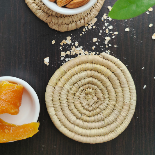 Handwoven Golden Grass Coasters - Set of 2 & 4
