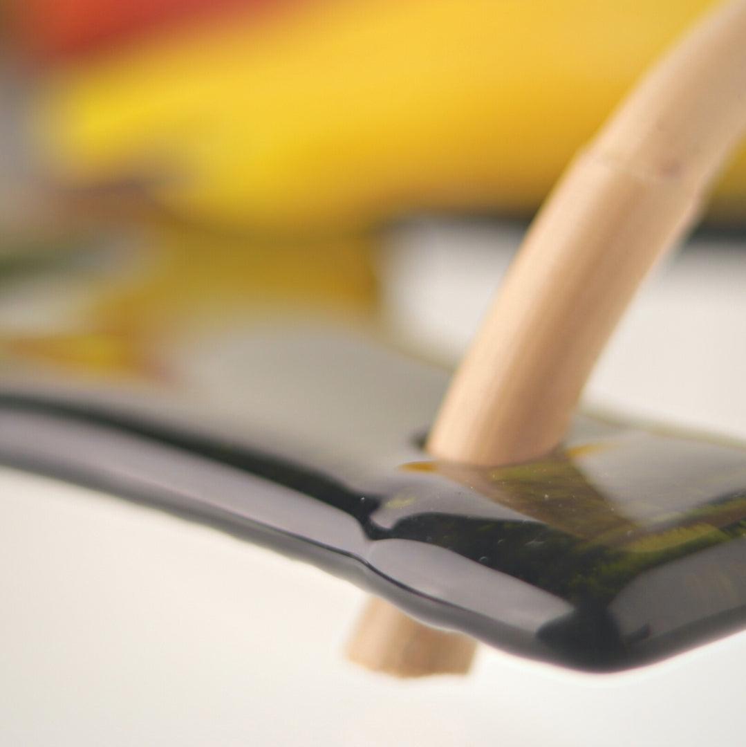 Elevate your hosting game with our artisanal Cheese Platter, a fusion of eco-friendly artistry and functional elegance. Crafted from recycled glass bottles, each platter is meticulously flattened to create a smooth surface that showcases your favorite cheeses and snacks. The natural cane handles not only add a touch of rustic charm but also ensure easy carrying for any occasion. This platter isn’t just a serving piece; it’s a conversation starter, a statement of sustainable luxury that’s bound to captivate your guests.